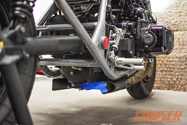 เครื่องยนต์เดิมจาก Honda Gold Wing 1,200 ซีซี 4 สูบนอนยัน และขับเคลื่อนด้วยเพลา ซึ่งดูแทบไม่ออกว่ามาจากรถทัวริ่งขนาดใหญ่และหรูหราที่สุดของฮอนด้า