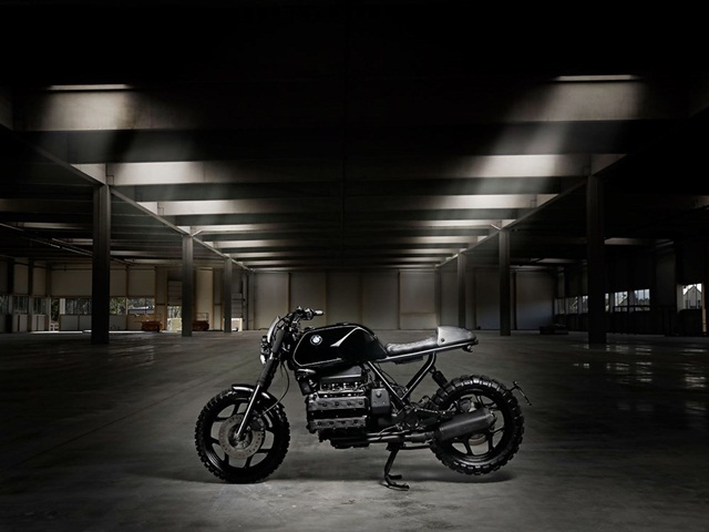 BMW K100 คันนี้ใช้งานมากว่า 21,000 กม. นำมาสร้างใหม่ด้วยมือล้วนๆ ตั้งแต่เฟรม จุดเชื่อมต่อต่างๆ และจุดยึดเครื่องยนต์ เบาะนั่งทำขึ้นมาใหม่หุ้มด้วยหนังแท้ ชิ้นส่วนต่างๆ ที่ไม่ต้องการถูกถอดออกหมดกว่า 40 กก.เพื่อลดน้ำหนักตัว