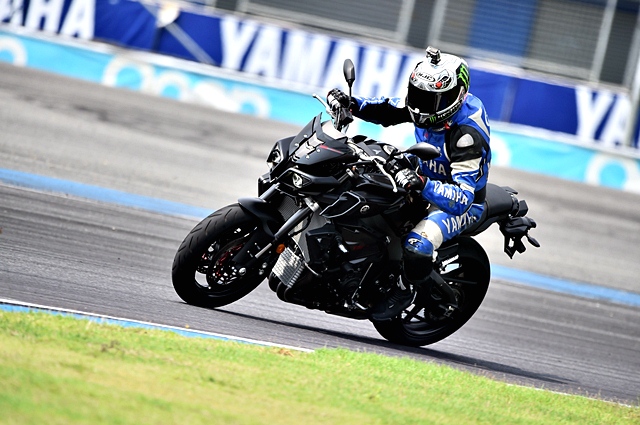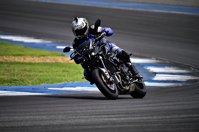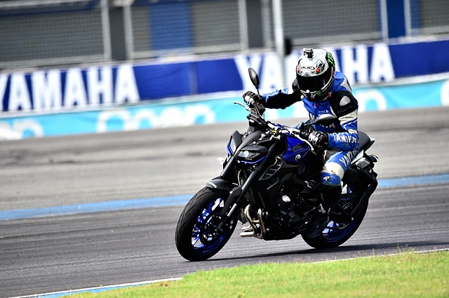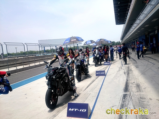 ถึงคิวสุดท้ายกับพี่ใหญ่ตระกูล MT ที่เปิดตัวมาตั้งแต่ปีที่แล้ว แต่ยังคงเป็นที่หมายปองของเหล่าไบค์เกอร์แนวสตรีทเพราะนับเป็นที่สุดของพลังความแรงจากเครื่องยนต์เดียวกันกับ R1 จึงทำให้ MT-10 เป็น Naked Bike ที่ดูน่าเกรงขามทั้งรูปลักษณ์ภายนอกและขุมพลัง เมื่อขึ้นไปคร่อมแล้วรับรู้ได้ทันทีถึงความแรงที่พร้อมทะยานออกไป กำลังระดับ 160 แรงม้าเช่นเดียวกับ R1 สะท้อนผ่านเสียงคำรามจากท่อไอเสียลั่นสนาม การทรงตัวและการเข้าโค้ง นิ่งและมั่นคงจนประทับใจสุดๆ ในช่วงทางตรงยาวผู้เขียนได้ลองเร่งสุดในแต่ละเกียร์ ตัวรถให้ความรู้สึกเหมือนดีดกระโจนไปข้างหน้าอย่างคลุ้มคลั่ง นับเป็นความเร้าใจที่ประทับใจสุดๆ จนคิดว่าถ้าเลือกได้ คงต้องเป็น MT-10 รุ่นนี้แน่นอน