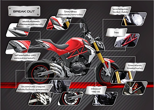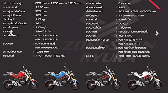 Zongshen Ryuka Break Out มาพร้อม 4 สีให้เลือก คือ แดง, ขาว, น้ำเงิน และดำด้าน ราคา 59,900 บาท