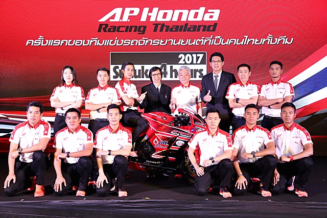 มร.โยอิจิ มิซึทานิ ประธานกรรมการบริหาร บริษัท เอ.พี. ฮอนด้า จำกัด กล่าวว่า เอ.พี. ฮอนด้าจะเข้าร่วมการแข่งขันเอ็นดูรานซ์ 4 ชั่วโมงที่สนามซูซูกะ ประเทศญี่ปุ่นในวันที่ 29 กรกฎาคม 2560 ที่จะถึงนี้ ในนามทีมแข่งเอ.พี. ฮอนด้า เรซซิ่ง ไทยแลนด์ ซึ่งเป็น Factory Team ที่ประกอบด้วยสมาชิกคนไทยทั้งหมด ตั้งแต่นักแข่ง ทีมช่างและหัวหน้าโค้ช ซึ่งถือเป็นครั้งแรกของทีมแข่งที่เป็นคนไทยทั้งทีมที่จะได้เข้าร่วมการแข่งขันนี้ ด้วย Factory Team ลักษณะดังกล่าว รูปแบบที่มักเห็นทั่วไปคือ การส่งนักแข่งไปร่วมกับทีมใดทีมหนึ่งในการแข่งขัน ก็สามารถเข้าแข่งชิงชัยได้โดยไม่เสียค่าใช้จ่ายมาก แต่เอ.พี. ฮอนด้าจะไม่ทำแบบนั้น เพราะเราต้องการพัฒนาไปอีกระดับ