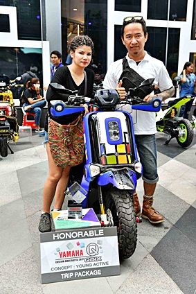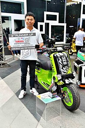 นางสาวจินตนา อุดมทรัพย์ ผู้จัดการใหญ่ด้านการค้า พร้อมด้วยผู้บริหารระดับสูง บริษัท ไทยยามาฮ่ามอเตอร์ จำกัด ให้เกียรติมอบรางวัล และถ่ายภาพร่วมกับเหล่าสำนักแต่งชื่อดังที่ได้รับรางวัลในการประกวดการตกแต่ง Yamaha QBIX ในกิจกรรม Yamaha Custom-Made Battle 2017 โดยกิจกรรมในครั้งนี้แบ่งการประกวดออกเป็น 2 รุ่น ได้แก่ รุ่น Young Active และ รุ่น Innovative และผู้ชนะในรุ่น Young Active ได้แก่ นายสุพรชัย แสงอรุณ จากร้าน รวมเจริญอะไหล่ และผู้ชนะในรุ่น Innovative ได้แก่ นายสมบูรณ์ เลิศสาครประเสริฐ จากร้าน ส.รวมเจริญยนต์ โดยผู้ที่ได้รับรางวัลทั้งหมดจะได้รับเงินรางวัล และแพ็กเกจทัวร์จากยามาฮ่าอีกด้วย โดยกิจกรรมครั้งนี้จัด ณ ลานกิจกรรมดิสคัฟเวอรี่ พลาซ่า สยามดิสคัฟเวอรี่