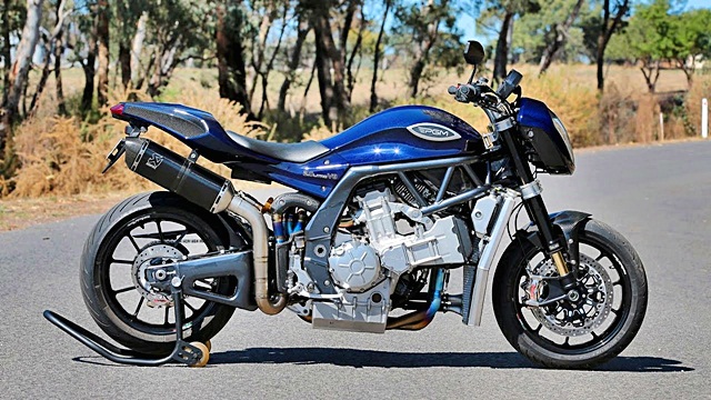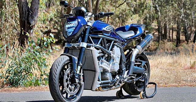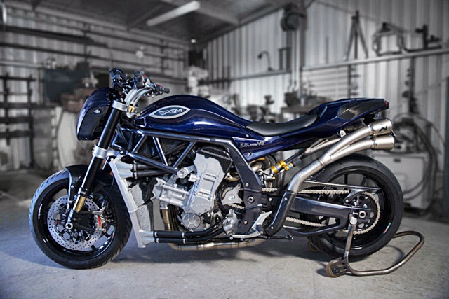 PGM 2.0 Liter V8 ซูเปอร์ไบค์จากสำนักผลิตรถคัสตอมชื่อ PGM - Paul G Maloney สร้างสรรค์ผลงานด้วยการใช้สัญลักษณ์แห่งความแรงด้วยเครื่องแบบ วี 8 สูบ แต่ถูกพัฒนาให้กะทัดรัดและคล่องตัวควบคู่กันไปด้วย