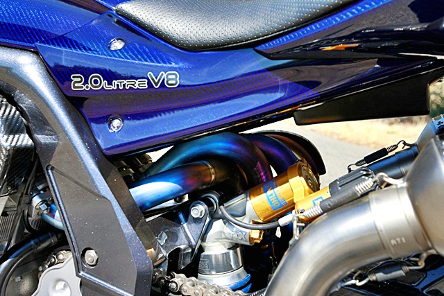 มาพร้อมเครื่องยนต์วี 8 สูบ 90 องศา 1,996 ซีซี DOHC 5 วาล์วต่อสูบ รวมเป็น 40 วาล์ว! ระบายความร้อนด้วยน้ำ ควบคุมการทำงานด้วยระบบ Motec M130 กำลังสูงสุด 334 แรงม้า 12,800 รอบต่อนาที แรงบิด 214 นิวตันเมตรที่ 9,500 รอบต่อนาที คายไอเสียด้วยระบบ 4-2-1 ทั้ง 2 ชุด ผ่านเกียร์ 6 จังหวะ จุน้ำมันได้ 16.5 ลิตร
