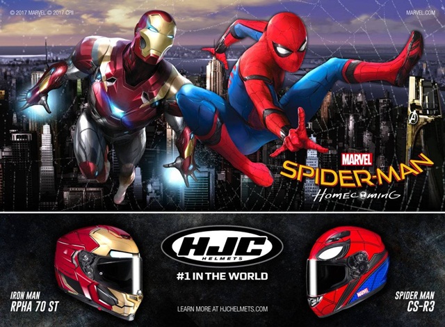 คุณก็เป็นเหล่าฮีโร่ได้ง่ายๆ เมื่องานนี้เจ้าสำนักแห่งวงการหมวกกันน็อกระดับโลก HJC Helmets ลงทุนโปรโมทหมวกกันน็อกรุ่นใหม่ที่มาพร้อมลวดลาย Iron Man และ Spider-Man ซึ่งทางฝั่งของ Spider-Man กำลังมีหนังเข้าฉายอยู่ทั่วโลกในขณะนี้