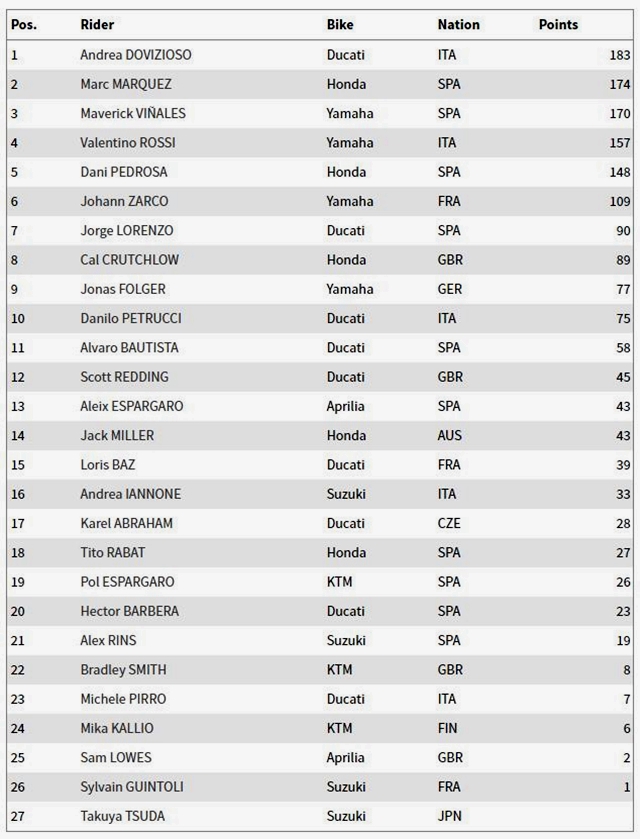 อันดับคะแนนสะสมประจำปี MotoGP 2017