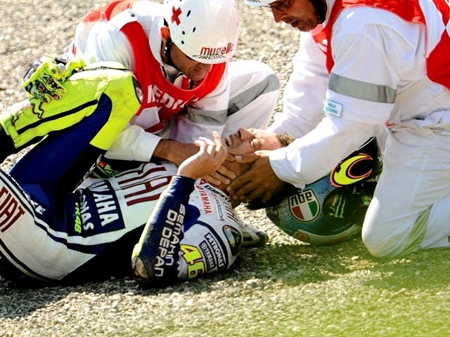 ทีมแข่งยามาฮ่า ออกมาแถลงว่า "วาเลนติโน่ รอสซี่ นักแข่งทีม มูฟวี่สตาร์ ยามาฮ่า โมโตจีพี ประสบอุบัติเหตุล้ม จากการซ้อมขี่เอนดูโร่เมื่อ 31 สิงหาคมที่ผ่านมา โดยหลังจากได้รับการตรวจพบว่า กระดูกขาขวาท่อนล่างทั้งคู่หัก"