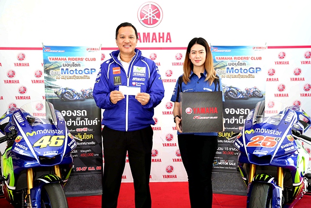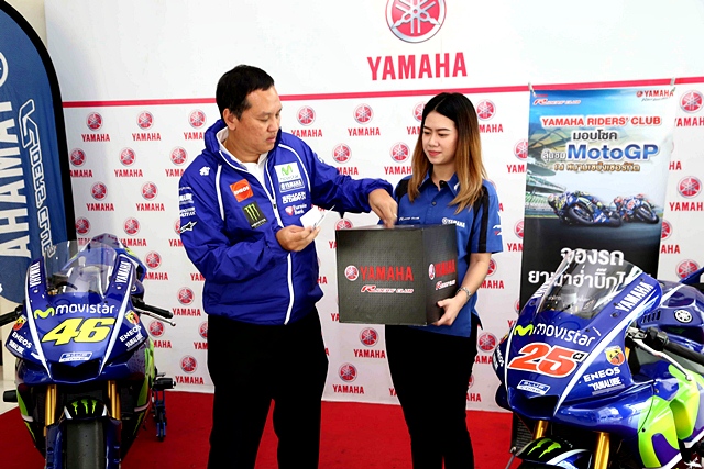 คุณภาณุพล กิตติคำรณ ผู้จัดการทั่วไปอาวุโส ฝ่ายวางแผนการขาย และการตลาด บริษัท ไทยยามาฮ่ามอเตอร์ จำกัด ให้เกียรติจับรางวัล บัตรเข้าชม MotoGP ณ สนามเซปัง อินเตอร์เนชั่นแนล เซอร์กิต ประเทศมาเลเซีย ผ่านแคมเปญ YAMAHA RIDERS' CLUB มอบโชค ลุ้นชม MotoGP ณ สนามเซปัง สำหรับลูกค้าที่จองรถยามาฮ่าบิ๊กไบค์ในงาน Bangkok International Grand Motor Sale 2017 จำนวน 15 รางวัล รางวัล 30,000 บาท รวมมูลค่า 450,000 บาท โดยการจับรางวัลในครั้งนี้จัดขึ้น ณ สถาบันฝึกอบรมขับขี่รถจักรยนานยนต์ยามาฮ่า (YRA)