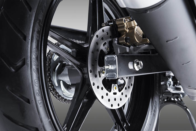ช่วงล่างด้านหน้าแบบ เทเลสโกปิคด้านหลังสวิงอาร์ม ยาง Tubeless ด้านหน้าขนาด 70/90-17M/C 38P และหลัง 120/70-17M/C 58P ระบบดิสก์เบรกหน้าจานขนาด 245 มม. ลูกสูบเดี่ยว และเบรกหลังจานขนาด 203 มม. ลูกสูบเดี่ยว