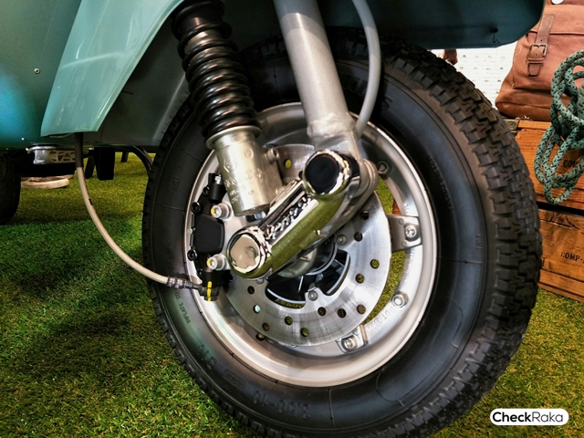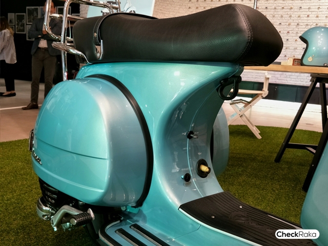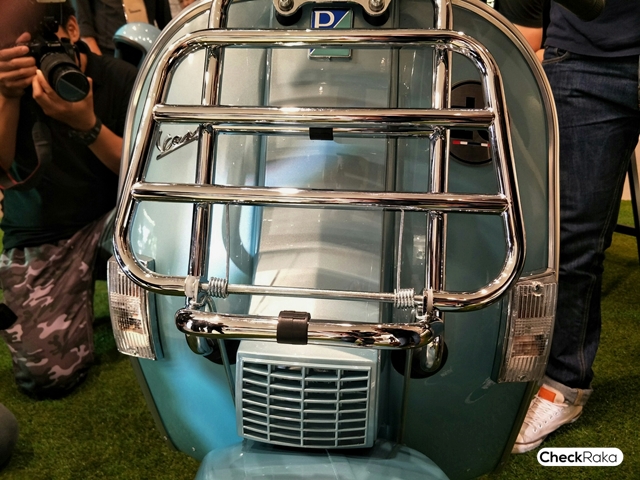 Vespa PX Touring Edition มาพร้อมกับชิวด์สั้นบังลม สามารถบรรทุกสัมภาระด้วยตะแกรงโครเมียมทั้งด้านหน้า และด้านหลัง