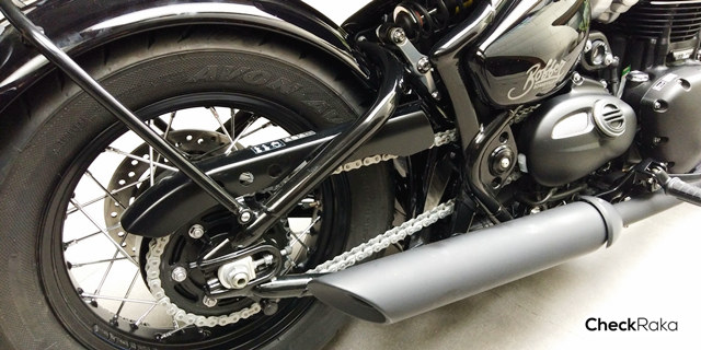 Bonneville Bobber Black หล่อเข้มดุดันขึ้นแต่คงไว้ซึ่งความสวยงามตามเอกลักษณ์ของ Bonneville Bobber ไม่ว่าจะเป็น สไตล์คัสตอมพันธุ์แท้ที่สวยงาม การขับขี่ที่เร้าใจ ดุดันเร้าอารมณ์ในแบบ Hot Rod ล้อหน้าขนาด 16 นิ้ว พร้อมโช้คหน้าขนาด 47 มม. รวมถึงสไตล์การตกแต่งสีดำสนิททั่วทั้งคัน อาทิ ท่อไอเสียสีดำ แป้นเบรกและที่พักเท้าสีดำ คันเกียร์ชุบผิวสีดำ คันเบรกและคลัตช์ชุบผิวสีดำ แฮนด์บังคับเลี้ยวสีดำ ฯลฯ อีกทั้งอุปกรณ์มาตรฐานประสิทธิภาพสูงยิ่งขึ้น ได้แก่ ดิสก์เบรกหน้าแบบคู่พร้อมคาลิปเปอร์ 2 ลูกสูบแบบคู่จาก Brembo ดิสก์เบรกหลังแบบเดี่ยวพร้อมคาลิปเปอร์ลูกสูบเดี่ยว กระบอกโช้คหน้า Showa ไฟหน้า LED ประสิทธิภาพสูงพร้อมไฟเดย์ไลท์แบบเฉพาะตัว มีระบบควบคุมความเร็วคงที่ด้วยปุ่มเดียวเป็นอุปกรณ์มาตรฐาน รวมถึงหน้าจอเอนกประสงค์ที่ควบคุมได้อย่างง่ายดายด้วยปลายนิ้ว