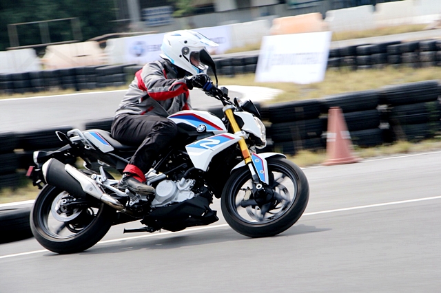 หลังจากทดสอบ G 310 GS เสร็จ ก็สลับไปขี่ G 310 R เนื่องจากงานนี้ทางบีเอ็มดับเบิลยูเน้นทดสอบตัวแรก จึงปล่อยให้ทดลองสมรรถนะของ G 310 R กันอย่างอิสระ โดยปล่อยให้ขี่แบบฟูลแลป 30 นาที ด้วยสภาพสนามจำลองแบบมินิเซอร์กิตของมอเตอร์ สปอร์ต พาร์ค มีความเหมาะสมกับการทดสอบมอเตอร์ไซค์คลาสเล็กต่ำกว่า 400 ซีซี เพราะมีโค้งซ้าย-ขวา สอดรับและทางตรงยาว ทำให้ได้ลองอัตราเร่ง เบรก ความคล่องตัว การพลิกเข้าโค้งอย่างต่อเนื่อง สรุป G 310 R ยังให้ความประทับใจ ขี่สนุก ควบคุมง่าย ให้อัตราเร่งและเบรกที่น่าประทับใจไม่น้อย การได้มาขี่ในสนามทดสอบแบบนี้ ทำให้มั่นใจในสมรรถนะของ G 310 R มากยิ่งขึ้น นับเป็นตัวเลือกของสปอร์ตไบค์คลาส 300 ซีซี ที่โดดเด่นรุ่นหนึ่ง