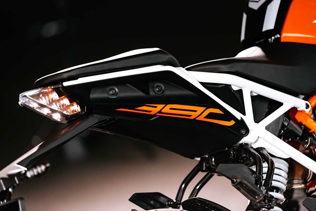 KTM 390 DUKE คือการนำแนวทางการออกแบบของรถรุ่นพี่ที่เป็นที่สุดแห่งสมรรถนะอย่าง KTM 1290 SUPER DUKE R เริ่มจากชุดไฟหน้าแบบแอลอีดีใหม่ที่โดดเด่นสะดุดตา ให้ความรู้สึกดุดัน มีรูปทรงของตัวถังที่แข็งแรง โฉบเฉี่ยวและเฉียบคมยิ่งขึ้น พร้อมส่วนของเบาะนั่งที่เผยโครงรถในมิติที่ดูสปอร์ตมากขึ้น รวมถึงเฟรมเสริมแบบยึดด้วยสลักเกลียว (Bolt-on Subframe) แบบใหม่ที่ดูโดดเด่นกว่าเดิม และระบบ RIDE-BY-WIRE คันเร่งไฟฟ้าตอบสนองแม่นยำ