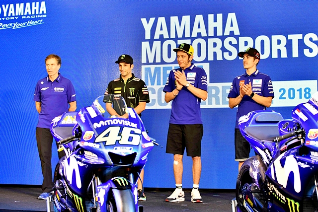 สองนักแข่งทีมมูวิสตาร์ ยามาฮ่า โมโตจีพี "วาเลนติโน่ รอสซี่" กับ "มาเวริค บีญาเลส" และ "โยฮัน ซาโก้" รุ๊คกี้ออฟเดอะเยียร์ 2017 ทีมมอนสเตอร์ ยามาฮ่า เทคทรี ทั้งหมดเดินทางมาแถลงข่าวที่สนามช้าง อินเตอร์เนชั่นแนลเซอร์กิต ถึงความพร้อมในการแข่งรายการ MotoGP 2018 และทดสอบสนามช่วงวินเตอร์เทส นอกจากนี้ยังมี "อเล็กซ์ โลว์" กับ "มิเชล ฟานเดอ มาร์ค" สองนักแข่งทีม PATA YAMAHA ที่เตรียมล่าแชมป์ใน World SBK 2018 รายการใหญ่สำหรับรถโปรดักส์ชั่นรุ่นท็อป