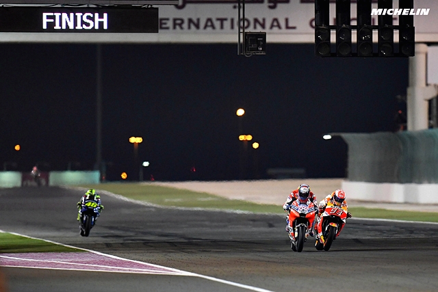 อังเดร โดวิซิโอโซ่ ควบรถดูคาติคว้าแชมป์แรกของฤดูกาลที่กาตาร์ โดยเฉือนเอาชนะ มาร์ค มาร์เกวซ แชมป์โลกคนล่าสุดไปอย่างสนุก พร้อมขึ้นนำคะแนนสะสมประเดิมฤดูกาล 2018 ล่าสุดส่อแววย้ายทีม ถ้าสัญญาฉบับใหม่ไม่เวิร์ค