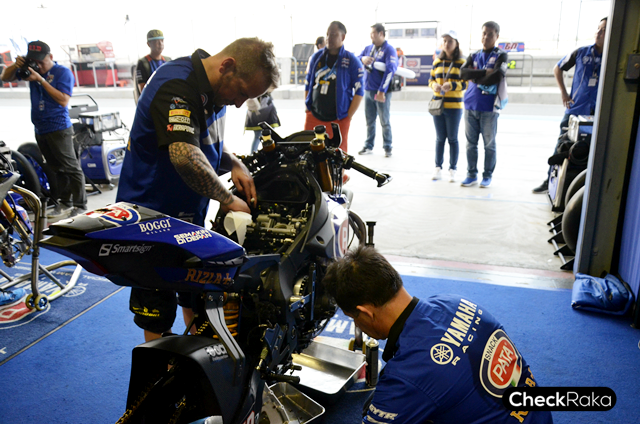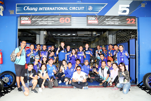 อีกหนึ่งกิจกรรมสุดพิเศษจาก Yamaha เมื่อ นายธีระพงษ์ โอภาสกรกุล ผู้จัดการทั่วไปอาวุโสฝ่ายกีฬายานยนต์ และสถาบันฝึกอบรมขับขี่รถจักรยานยนต์ยามาฮ่า พร้อมด้วย นางสรวงสุดา มนัสบุญเพิ่มพูล ผู้จัดการทั่วไปอาวุโสฝ่ายการตลาดกลุ่มรถออโตเมติก และตราสินค้า บริษัท ไทยยามาฮ่ามอเตอร์ จำกัด พาสื่อมวลชสนร่วมสัมผัสประสบการณ์สุดเอ็กซ์คูลซีฟด้วยการเข้าชมการทำงานในพิทของทีมแข่งระดับโลกอย่าง PATA Yamaha Official WorldSBK ซึ่งทางทีมก็คอยให้การต้อนรับพร้อมพาชมการทำงานต่างๆ ภายในพิทอย่างอบอุ่นและเป็นกันเอง