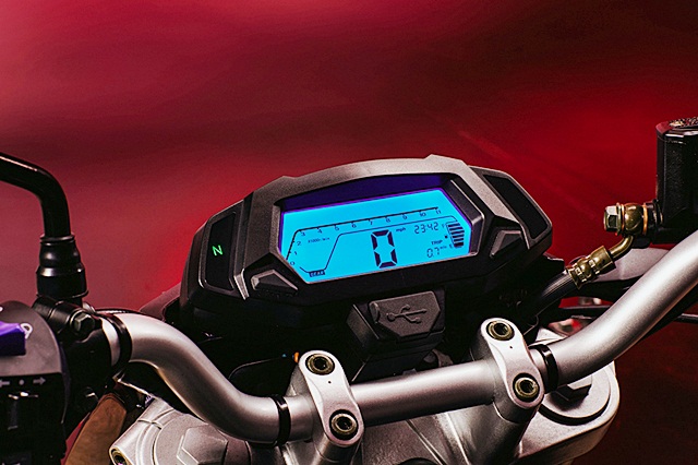 มาตรวัดเปลี่ยนสีได้แสดงความเร็วรอบเครื่องยนต์, ความเร็ว, ระดับน้ำมันเชื้อเพลิง, ตำแหน่งเกียร์, ทริป A,B เป็นต้น แฮนด์บาร์อลูนิเนียมและยกสูง สวิตช์กุญแจอยู่ตรงถังน้ำมัน