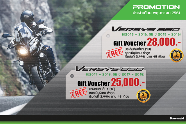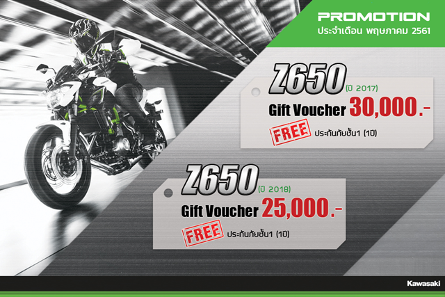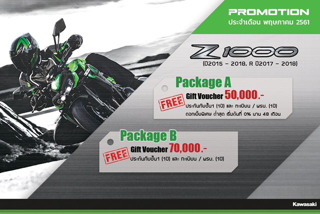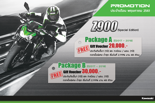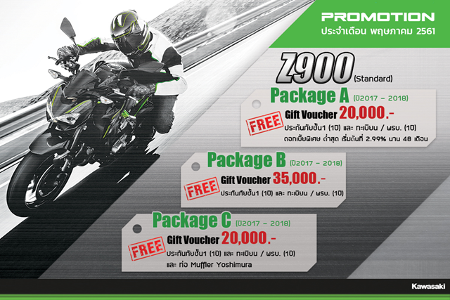 * Z 900 มีโปรโมชั่น Motorcycle Step up สำหรับผู้ที่ครอบครองรถ 150-900cc. รุ่นใดก็ได้จะได้รับ Gift Voucher มูลค่า 10,000 บาท