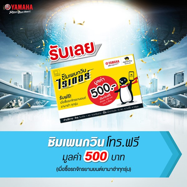 รับทันที! ซิมเพนกวินพร้อมค่าโทร 500 บาท เมื่อซื้อรถจักรยานยนต์ยามาฮ่ารุ่นใดก็ได้