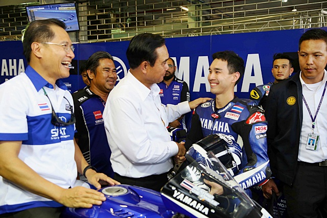 ฯพณฯ นายกรัฐมนตรี พลเอกประยุทธ์ จันทร์โอชา พร้อมคณะ เดินทางเข้าเยี่ยมชม สนามช้าง อินเตอร์เนชั่นแนล เซอร์กิต จ.บุรีรัมย์ สำรวจความพร้อมก่อนจัดการแข่งขันโมโตจีพี พร้อมเข้าเยี่ยมชมพิท ยามาฮ่า ไทยแลนด์ เรซซิ่งทีม สัมผัสการทำงานแบบมืออาชีพ และขึ้นคร่อมรถแข่งยามาฮ่า New YZF-R6 ที่ใช้ลงสนามด้วย