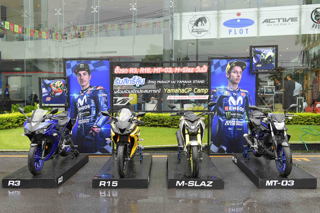 โดยได้จัดแคมเปญพิเศษให้กับลูกค้าที่ซื้อรถจักรยานยนต์ยามาฮ่า 4 รุ่น ได้แก่ R3, R15, MT-03 และ M-SLAZ ในระหว่างวันที่ 1 กรกฎาคม ถึง 31 สิงหาคมนี้ มีสิทธิ์ลุ้น 300 รางวัล (รางวัลละ 2 ท่าน) มูลค่า 13,500 บาทต่อรางวัล เป็นผู้โชคดี 600 ท่าน ที่ได้รับบัตรเข้าชม "โมโตจีพี" บนยามาฮ่าแสตนด์ พร้อมร่วมเปิดประสบการณ์ใหม่ที่จะทำให้คุณสัมผัสบรรยากาศยิ่งใหญ่ที่สุด บนพื้นที่เดียวกับสนามแข่งขันฯ พบกับพื้นที่จัด "ยามาฮ่าจีพีแคมป์" แคมป์หนึ่งเดียวในโลกจากยามาฮ่า ณ สนามช้าง อินเตอร์เนชั่นแนล เซอร์กิต จ.บุรีรัมย์ เพียงสนามแข่งขันเดียวจากสนามแข่งขันทั้งหมด 19 สนามทั่วโลกค่ะ"
