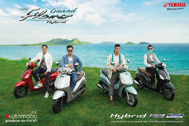 "ยามาฮ่า แกรนด์ ฟีลาโน่ ไฮบริด" #ชีวิตมีคลาส สมาร์ทไปอีกขั้น ยังได้กลุ่มศิลปินชื่อดังระดับ 1,000 ล้านวิวอย่างวง "getsunova" นำโดย เนม ปราการ, นาฑี, นต ปณต และ ไปร์ท คมฆเดช ที่ยังคงเป็นพรีเซ็นเตอร์ให้กับ "ยามาฮ่า แกรนด์ ฟีลาโน่" มาตลอด 4 ปี มาช่วยเสริมภาพลักษณ์ของ "ยามาฮ่า แกรนด์ ฟีลาโน่ ไฮบริด" ให้เหนือระดับไปอีกขั้น พร้อมภาพยนตร์โฆษณาที่ได้รับความร่วมมือจากการท่องเที่ยวแห่งประเทศไทย (ททท.) ในการเลือกสรรสถานที่ถ่ายทำเพื่อตอบโจทย์ภาพลักษณ์ความเป็นพรีเมียมของ "ยามาฮ่า แกรนด์ ฟีลาโน่ ไฮบริด" และเป็นการสร้างมุมมองใหม่ในการท่องเที่ยวในประเทศอีกด้วย