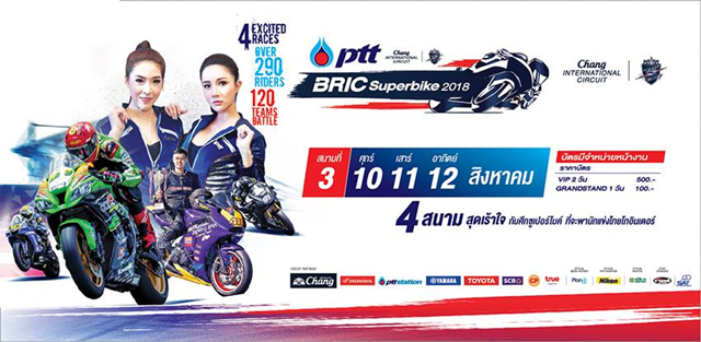 การแข่งขันรถจักรยานยนต์ทางเรียบชิงแชมป์ประเทศไทย รายการ PTT BRIC Superbike Championship 2018 เข้าสู่ช่วงโค้งสุดท้ายของปีการแข่งขัน ในสนามที่ 3 ระหว่างวันที่ 10-12 สิงหาคมนี้ไฮไลต์ของสนามนี้คือการเข้าสู่โค้งสุดท้ายของการลุ้นแชมป์ประจำปีในฤดูกาล 2018 ซึ่งจะทำให้ทราบว่าในสนามสุดท้ายซึ่งมีขึ้นช่วงปลายปี สถานการณ์ลุ้นแชมป์จะเป็นอย่างไร และนักบิดคนใดจะสามารถคว้าสิทธิไวด์การ์ดของการแข่งขันระดับโลกอย่าง World Superbike Championship และ Asia Road Racing Championship ไปครอง ที่ สนามช้าง อินเตอร์เนชั่นแนล เซอร์กิต จ.บุรีรัมย์