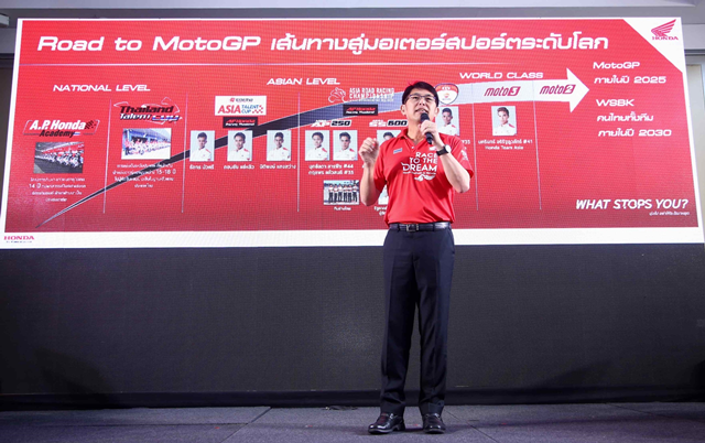"Race to the Dream...สปิริตไทย ท้าทายสู่ฝัน" คือ แนวคิดสำคัญในการปั้นนักแข่งไทยไปสู่สนามระดับโลก "Moto GP" ในปี 2025 โดย Honda ได้วางโร้ดแม็ปเอาไว้อย่างชัดเจนจากโครงสร้างที่ได้มาตรฐานในทุกขั้นตอน ทุกระดับ นับตั้งแต่ Honda Academy Thailand สำหรับนักแข่งอายุ 9-14 ปี เพื่อเรียนรู้พัฒนาทักษะการขับขี่ และความแข็งแกร่งของร่างกาย ก่อนก้าวสู่ความท้าทายในการแข่งขันรายการ Honda Thailand Talent Cup เมื่อเติบโตขึ้นมีอายุระหว่าง 15-20 ปี และเด็กที่มีฝีมือจะถูกคัดเลือกไปแข่งขันที่รายการ Asia Talent Cup ก่อนจะผลักดันสู่ CEV Moto 3 Junoir ซึ่งมีปลายทางที่การแข่งขันระดับโลกเวิลด์กรังด์ปรีซ์ ในรุ่น Moto 3 , Moto 2 และจุดสูงสุดคือ Moto GP นั่นเอง