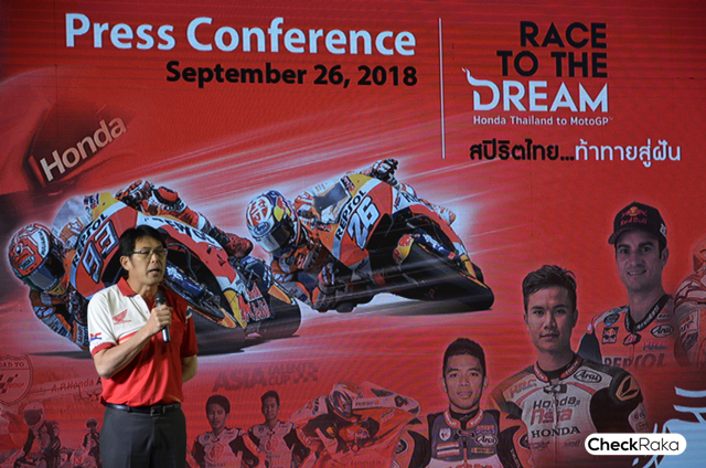 เพื่อเป็นการผลักดันนักแข่งไทยตามคอนเซปต์ "A.P. Honda Race To The Dream" สปิริตไทย ท้าทายสู่ฝัน คุณสุชาติ อรุณแสงโรจน์ รองประธานกรรมการบริหาร บริษัท เอ.พี. ฮอนด้า จำกัด กล่าวว่า ทางบริษัทฯ ได้ให้การสนับสนุนและผลักดันวงการมอเตอร์สปอร์ตในเมืองไทย มาอย่างต่อเนื่อง และยาวนานกว่า 32 ปี ปั้นนักบิดและทีมช่างสัญชาติไทย 100 % เข้าร่วมการแข่งขันรายการชั้นนำมาแล้วมากมายหลายฤดูกาล ปั้นเยาวชนไทยสู่นักบิดระดับโลก โมโตจีพี ภายในปี 2025 และพร้อมแล้วสำหรับอีกหนึ่งบทบาทสำคัญ ในการที่ประเทศไทยจะเป็นเจ้าภาพจัดการแข่งขันโมโตจีพีเป็นปีแรก ทาง A.P. Honda ได้ส่งนักแข่งไทยเข้าร่วมการแข่งขันในครั้งนี้มากถึง 5 คน ทั้งในรุ่น Moto3 และ Asia Talent Cup พร้อมกับเตรียมจัดกิจกรรมต่างๆ ไว้รองรับมากมาย เพื่อต้อนรับแฟนๆ มอเตอร์สปอร์ตชาวไทยและชาวต่างชาติ ที่เดินทางมาเชียร์นักแข่งในดวงใจถึงขอบสนาม ให้ได้รับความสนุกและความประทับใจตลอดการแข่งขันทั้งหมด 3 วัน