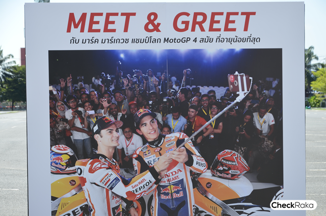 โดยไฮไลท์สำคัญอยู่ที่บริเวณ Honda Meet & Greet Zone ที่ชาวฮอนด้าคลับ และแขกพิเศษของทางฮอนด้า จะได้กระทบไหล่กับเหล่าซูเปอร์สตาร์นักบิดระดับโลก นำโดย "มาร์ค มาร์เกซ" แชมป์โลก 4 สมัย, ดานี่ เปโดรซ่า, คาลล์ ครัชโลวว์, ทาคาอากิ นาคากามิ รวมถึง นักแข่งระดับตำนาน "ไมเคิล ดูฮาน" อดีตแชมป์โลก 5 สมัย