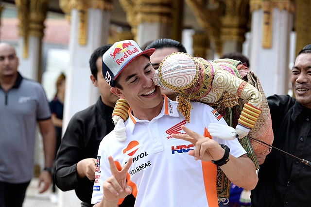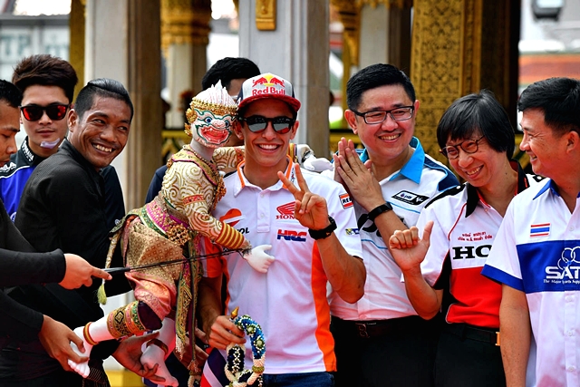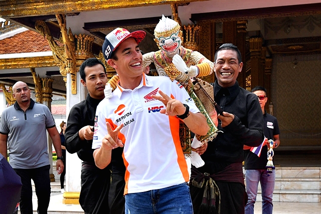 มาร์ค มาร์เกซ นักบิดชาวสเปน เจ้าของตำแหน่งแชมป์โลกโมโตจีพี 4 สมัย สังกัด เรปโซล ฮอนด้า เดินทางถึงประเทศไทย พร้อมร่วมกิจกรรมพิเศษ โดยมี กฤษณะ แก้วธำรงค์ ผู้อำนวยการฝ่ายโฆษณาและประชาสัมพันธ์ การท่องเที่ยวแห่งประเทศไทย, ทนุเกียรติ จันทร์ชุม ผู้อำนวยการฝ่ายกีฬาอาชีพและกีฬามวย การกีฬาแห่งประเทศไทย, บุรณิน รัตนสมบัติ รองกรรมการผู้จัดการใหญ่ธุรกิจหล่อลื่น บริษัท ปตท. น้ำมันและการค้าปลีก จำกัด (มหาชน), อารักษ์ พรประภา รองประธานกรรมการบริหาร บริษัท เอ.พี. ฮอนด้า จำกัด, พงศธร เอื้อมงคลชัย ผู้จัดการใหญ่ด้านการค้า บริษัท ไทยยามาฮ่า มอเตอร์ จำกัด และตนัยศิริ ชาญวิทยารมณ์ กรรมการผู้อำนวยการ บริษัท บุรีรัมย์ ยูไนเต็ด อินเตอร์เนชั่นแนล เซอร์กิต จำกัด ในฐานะเจ้าภาพและผู้สนับสนุนหลักการจัดการแข่งขันรถจักรยานยนต์ชิงแชมป์โลก หรือโมโตจีพี รายการ พีทีที ไทยแลนด์ กรังด์ปรีซ์ 2018 (PTT Thailand Grand Prix 2018) ซึ่งจะแข่งกัน 5 - 7 ต.ค.61 ณ สนามช้าง อินเตอร์เนชั่นแนล เซอร์กิต จ.บุรีรัมย์ ให้การต้อนรับ ณ ลานพลับพลามหาเจษฎาบดินทร์ วัดราชนัดดาราม เมื่อวันที่ 3 ต.ค. ที่ผ่านมา