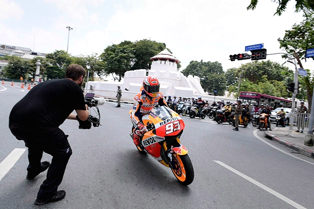 หลังจากนั้น "มาร์ค มาเกซ" และ "ชิพ" นครินทร์ ได้เดินทางไปร่วมถ่ายทำวีดีโอโปรโมทประเทศไทย ที่จะใช้ในช่วงการแข่งขันโมโตจีพี เผยแพร่ไปทั่วโลก โดยมาเกซจะขี่รถมอเตอร์ ไซด์ RC213V ที่ใช้แข่งขันและรถตุ๊กตุ๊ก ไปเที่ยวชมสถานที่ท่องเที่ยวสำคัญต่างๆ ในกรุงเทพมหานคร เริ่มจากถนนราชดำเนินกลางบริเวณป้อมมหากาฬ ไปยังอนุสาวรีย์ประชาธิปไตย จากนั้นย้ายจุดถ่ายทำไปยังเสาชิงช้า ซึ่งถือว่าเป็นใจกลางของกรุงเทพฯ และเป็นแลนด์มาร์คอันโดดเด่น รวมทั้งถ่ายทำบรรยากาศสตรีทฟู้ดของไทย บริเวณถนนดินสอ ซึ่งเป็นซิกเนเจอร์ระดับประเทศอีกอย่างหนึ่ง