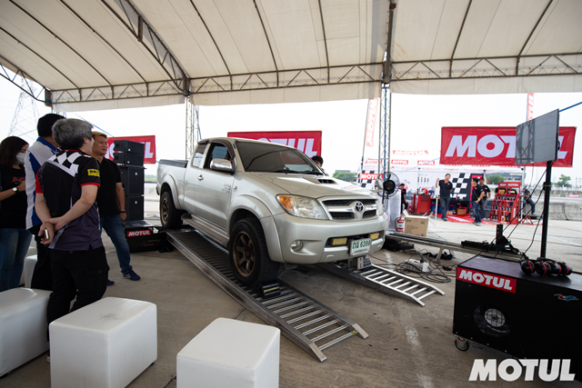 ส่วนรถกระบะที่จะใช้ขึ้น Dyno Test เครื่องยนต์ดีเซล ได้แก่ 1. Toyota Vigo : ใช้น้ำมันเครื่องMotul รุ่น CRDI Plus ส่วนรถยนต์ที่จะใช้ขึ้น Dyno สำหรับเครื่องยนต์เบนซิน มีจำนวน 2 คัน คือ 1. Subaru BRZ น้ำมันเครื่องที่ใช้คือ Motul 300V 2. Honda Jazz น้ำมันเครื่องที่ใช้คือ Motul H-Tech Plus.