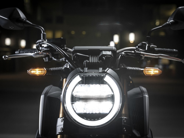 ไฟหน้าทรงกลมแบบ LED พร้อมไฟส่งสว่างตอนกลางวัน ซึ่งคงเอกลักษณ์แนวเรโทรคาเฟ่ได้อย่างดี ซึ่งจะมีลักษณะเช่นเดียวกับรุ่นพี่ CB1000R แบบชัดเจน