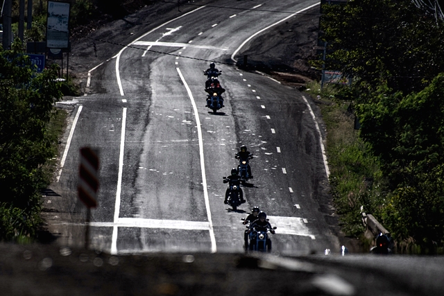 ไม่นานก็เข้าสู่เขตจังหวัดสระบุรี ขบวนฯ ขี่ตัดเข้าสู่อำเภอแก่งคอย เพื่อวิ่งสัมผัสธรรมชาติขุนเขาและอุโมงค์ต้นไม้ เส้นทางสวยงามและทำความเร็วได้ดีอย่างต่อเนื่อง จนได้เวลาพักกลางวัน ขบวนฯ มาแวะรับประทานอาหารกลางวันกันที่อำเภอปากช่อง ก่อนเดินทางผู้เขียนได้เปลี่ยนมาขี่รุ่น FAT BOY จากนั้นพากันขี่ขึ้นไปทางอุทยานแห่งชาติเขาใหญ่ ตัดไปทางถนนธนะรัชต์ที่เป็นเส้นทางท้าทายด้วยโค้งมากมายและมีความสวยงาม ขบวนฯ ไปพักทานกาแฟกันในช่วงบ่ายที่ร้าน Veravian เพื่อสนทนาแลกเปลี่ยนข้อมูลที่ได้ขี่กันมาเกือบทั้งวัน จนได้เวลาสมควรก็เดินทางกันต่อ ผู้เขียนเปลี่ยนมาขี่รุ่น Iron 883 คันเล็กสุดของกลุ่ม ขบวนฯ มุ่งหน้าไปแวะเก็บภาพสวยๆ กันที่เขื่อนลำพระเพลิงในช่วงเย็น จากนั้นก็ขี่ไปเข้าที่พัก คิรีมายา รีสอร์ต จบการขี่วันแรก