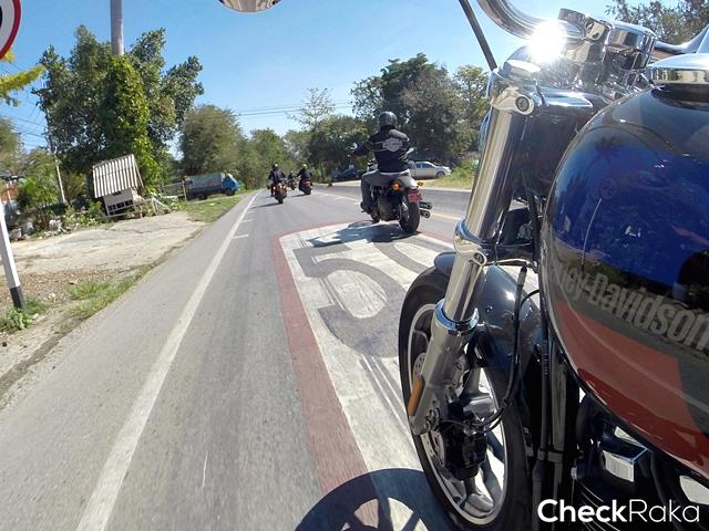 การเดินทางเริ่มต้นที่โชว์รูม AAS บนถนนวิภาวดีรังสิต มุ่งหน้าถนนพหลโยธิน ผู้เขียนได้ขับรุ่น 1200 Custom ตระกูล Softail ก่อนเป็นรุ่นแรก ขบวนฯ 14 คัน ขี่ผ่านการจราจรหนาแน่นหลายช่วง ผู้เขียนรู้สึกว่ามอเตอร์ไซด์ฮาร์ลีย์-เดวิดสัน คันใหญ่ในสายตาใครหลายคน แต่พอขี่จริงๆ ก็คล่องตัว นุ่มสบาย ระหว่างทางช่วงอำเภอวังน้อยแวะเติมน้ำมันเปลี่ยนรถกันเพื่อได้ลองขี่หลากหลายรุ่น ผู้เขียนเปลี่ยนมาขี่เป็นรุ่น Low Rider ที่ยังให้ความสบายในการขี่ไม่ต่างจากเดิม แต่เปี่ยมไปด้วยพลังที่มากกว่า