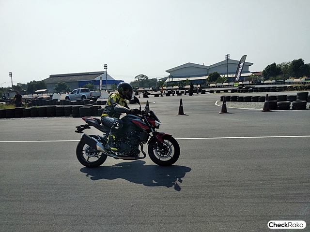 ทีมงานเช็คราคา.คอม ได้ลองสัมผัส Kawasaki Z400 ในสนามแห่งนี้ด้วยระยะทางสั้นๆ ประมาณ 8 - 9 รอบ อาจไม่ได้ขับยาวๆ นัก แต่ก็พอที่จะจับความรู้สึกได้ระดับหนึ่ง โดยเจ้า Z400 ใหม่ โดดเด่นที่ความเบา คล่องตัว จะพลิกโค้งซ้ายและขวาก็ทำได้ง่ายดาย บวกกับสมรรถนะอัตราเร่งที่ดี ช่วยให้ออกตัวจากโค้งได้รวดเร็วทันใจ พร้อมระบบสลิบเปอร์คลัตช์ช่วยลดอาการ "ล้อล็อค" เมื่อเชนเกียร์ต่ำก่อนเข้าโค้ง นับว่าปลอดภัยมากขึ้น โดยรวมแล้ว แม้จะสัมผัสได้ไม่เต็มที่ แต่ก็ประทับใจในความเบา ขี่ง่าย น้ำหนักคลัตช์เบา เบรกดี และอัตราเร่งที่ตามมือ