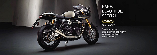 New Thruxton TFC เป็นรุ่นที่มีตราสัญลักษณ์ TFC และหมายเลขเฉพาะกำกับเพียง 750 คัน ลงนามโดยประธานเจ้าหน้าที่บริหารของไทรอัมพ์อย่าง Nick Bloor รวมถึงหนังสือคู่มือแบบพิเศษ น้ำหนักที่เบาขึ้น และมีกำลังมากกว่ารุ่น Thruxton R ถึง 10 แรงม้า แรงบิดสูงสุด 115 นิวตันเมตร ที่ 4,850 รอบต่อนาที ระบบกันการสั่นสะเทือนจากโช๊คหน้าหัวกลับ NIX30 จาก Ohlins ที่สามารถปรับได้ เบรก Brembo แบบเรเดียล และก้านเบรกแบบปรับได้ ท่อเก็บเสียง Vance & Hines ทำจากไทเทเนียม ระบบคลัตช์ช่วยผ่อนแรงจะช่วยให้ขับขี่ได้สบายมากยิ่งขึ้นในระยะทางไกล รวมไปถึงการขับขี่แบบ stop-start ในขณะที่ช่องสำหรับชาร์จ USB