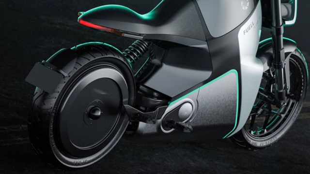 โมเดลที่ 2 รถจักรยานยนต์ไฟฟ้า (e-bike) ของ Fuell หรือที่เรียกว่า Flow-1 มอเตอร์ไซค์ที่มีรูปทรงเน็กเก็ตไบค์ มีมอเตอร์ไฟฟ้าตั้งอยู่ล้อหลัง ซึ่งเป็นข้อดีของการที่ใช้มอเตอร์ในการขับเคลื่อนโดยตรงโดยไม่ต้องใช้สายพานหรือโซ่