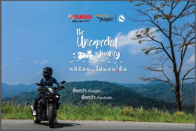 บริษัท รถจักรยานยนต์ ยามาฮ่า ร่วมกับ การท่องเที่ยวแห่งประเทศไทย เคาะกิจกรรมใหม่ที่ไม่เคยมีมาก่อนครั้งแรกกับการขับขี่รถมอเตอร์ไซค์คู่ใจท่องเที่ยวในที่สุดชิค กับโครงการ Yamaha amazing ไทยเท่ ด้วยทริปท่องเที่ยวไทย "The Unexpected journey หนีร้อน..ไปนอนเย็น" ยิ่งกว่าที่เคยรู้สึก ยิ่งกว่าที่เคยสัมผัส.. สำหรับลูกค้ารถจักรยานยนต์ยามาฮ่าไรเดอร์คลับ