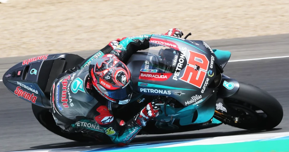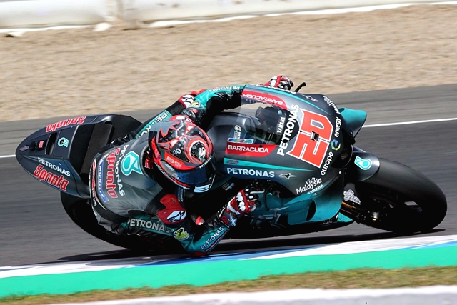 ฟาบิโอ กวาร์ตาราโร นักแข่งทีมเปโตรนาส ยามาฮ่า ที่ไม่จบการแข่งขันทำให้พลาดโพเดียม หลังโชว์ฟอร์มเฉียบพร้อมทำสถิติเวลาต่อรอบดีที่สุดในการแข่งโมโตจีพีรายการสแปนิช กรังด์ปรีซ์ กลับมาทำเวลาเฉียบในการทดสอบที่เฆเรซล่าสุด