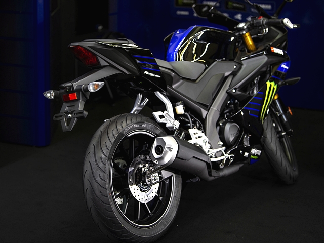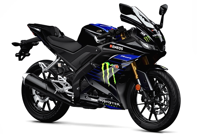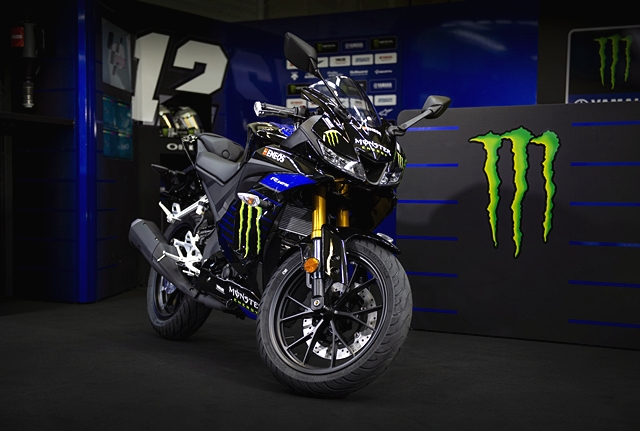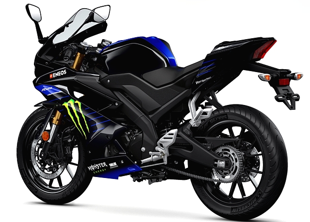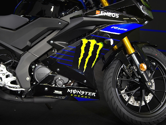 ลวดลายของ ยามาฮ่า YZF-R125 ใหม่ธีม Monster Energy Yamaha MotoGP Edition เป็นการสะท้อนความร้อนแรงของ YZR-M1 MotoGP ตัวแข่งของ วาเลนติโน่ รอสซี่ และ มาเวอริค บิญาเลส หลังจากที่เครื่อง Monster Energy ได้เข้ามาเป็นทีมสปอนเซอร์ล่าสุดปีนี้