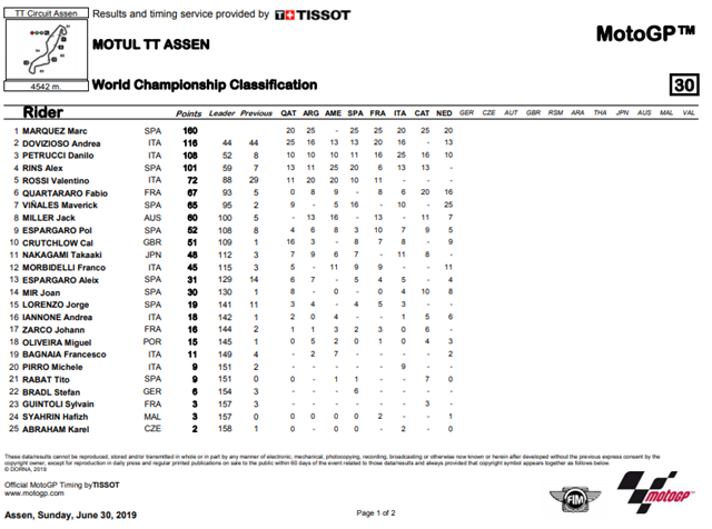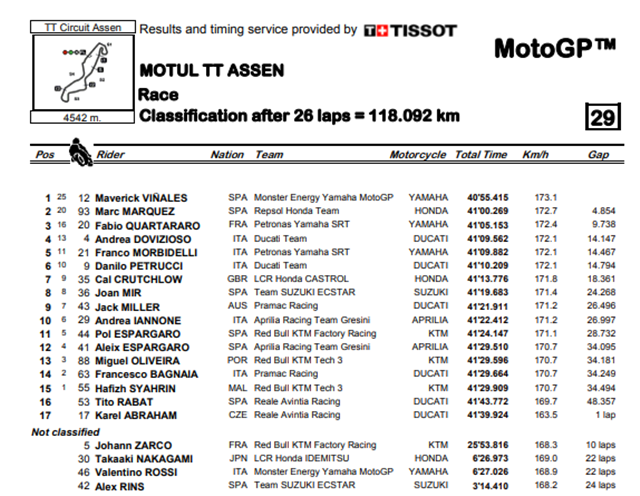 ผลการแข่งขัน MotoGP รายการ Motul TT Assen ณ สนาม TT Circuit Assen