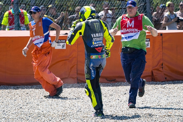 หลังจากนั้นในโค้งที่ 8 เกิดอุบัติเหตุทำให้ วาเลนติโน่ รอสซี่ และ ทาคาอากิ นาคากามิ ต้องออกจากการแข่งขันไป การแข่งขันของกลุ่มผู้นำ กวาร์ตาราโร่, บีญาเลส และ มาร์เกซ ที่เบียดแซงสลับกันไปมาอยู่หลายรอบ จนเห็นได้ชัดว่ารถของ กวาร์ตาราโร่ มีอาการสะบัด ประกอบกับยังมีอาการบาดเจ็บ อาร์มปั๊ม จึงต้องปล่อยให้ บีญาเลส และ มาร์เกซ แซงขึ้นไปส่วนตัวเองนั้นตามประคองในอันดับ 3 อยู่ห่างๆ