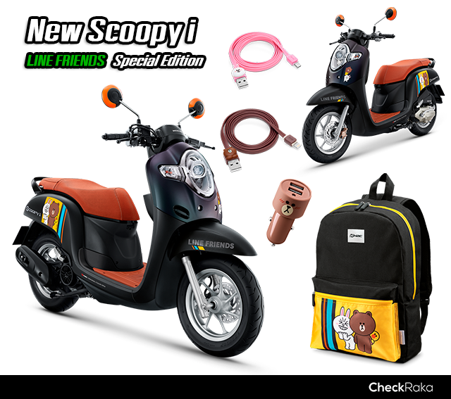 มาพร้อมกับกิฟท์เซ็ท กระเป๋าเป้ ที่ชาร์จ สายชาร์จไลท์นิ่งลายบราวน์ สายชาร์จไมโครยูเอสบีลายโคนี่ วางจำหน่ายพร้อมกันทั่วประเทศตั้งแต่วันที่ 27 กรกฏาคมนี้เป็นต้นไป ที่ศูนย์ Honda Wing Center ใครเป็นเจ้าของ 100 คันแรก สามารถกดรับสิทธิ์รับเสื้อยืด Scoopy i LINE FRIENDS Special Edition ใน LINE PROMO ได้ฟรีอีกด้วย