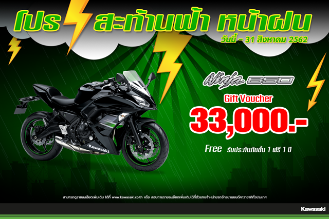 พบโปรโมชั่นสุดพิเศษประจำเดือน สิงหาคม กับ "โปรฯ สะท้านฟ้า หน้าฝน" หากใครกำลังมองหารถคู่ใจไว้ใช้งานหน้าฝน หรือใช้ในชีวิตประจำวัน ห้ามพลาด! กับโปรรับหน้าฝนจากค่ายยักษ์เขียว KAWASAKI ที่จัดโปรแทบทุกรุ่น โดยเริ่มจากน้องเล็ก 125 cc จนถึง 1000 cc