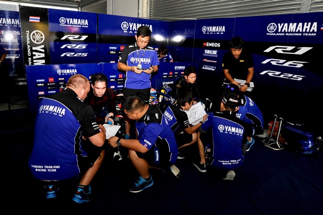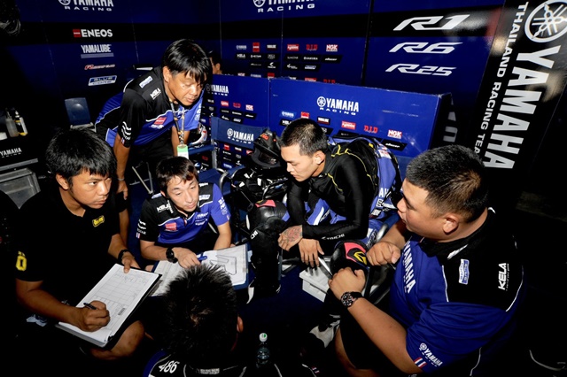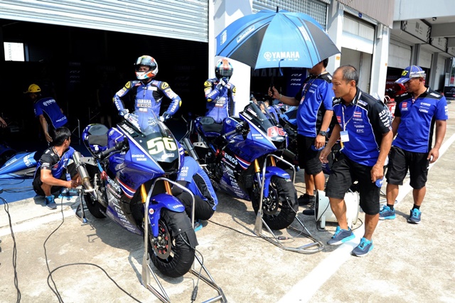 แสตมป์-อภิวัฒน์ วงศ์ธนานนท์ หมายเลข 24 และ โฟลท-รัฐพงษ์ วิไลโรจน์ หมายเลข 56 คู่หูนักบิดดีกรีแชมป์เอเชียของทีมในเกมรุ่นใหญ่อย่าง ASIA SUPERBIKE 1000cc ทำเวลารั้งอยู่ในอันดับ 8 และ 10 หลังผ่านรอบควอลิฟาย ทั้ง แสตมป์ และ โฟลท ได้เริ่มสตาร์ทจากกริดที่ 6 และ 7 ตามลำดับจับเวลา โดยการแข่งขันในเรซที่ 1 เป็นไปอย่างเข้มข้นตั้งแต่ต้นเกม โดยผลปรากฏว่า แสตมป์-อภิวัฒน์ ทะยานเข้าเส้นชัยรับธงตราหมากรุกในอันดับ 5 เก็บคะแนนสะสมเพิ่ม 11 คะแนน ส่วน โฟลท-รัฐพงษ์ ควบ YZF-R1 เข้าเส้นชัยในอันดับที่ 10 ซึ่งผลการแข่งขันนี้ส่งผลของ แสตมป์ มีคะแนนสะสมรั้งอยู่ในอันดับที่ 4 ส่วน โฟลท รั้งอยู่อันดับที่ 7