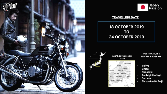 ผู้ชนะ 4 ท่านสำหรับทริปญี่ปุ่นจะออกเดินทางเพื่อตามหา Passion ระหว่างวันที่ 18 - 24 ตุลาคม 2562 นอกจากการขับขี่รถ Honda CB1100 บนเส้นทางสุดพิเศษแล้ว ยังจะได้ร่วมชมการแข่งขัน MotoGP รายการ Japanese Grandprix 2019 พร้อมเยี่ยมเยือนความยิ่งใหญ่ของฮอนด้าที่ Honda Collection Hall อีกด้วย