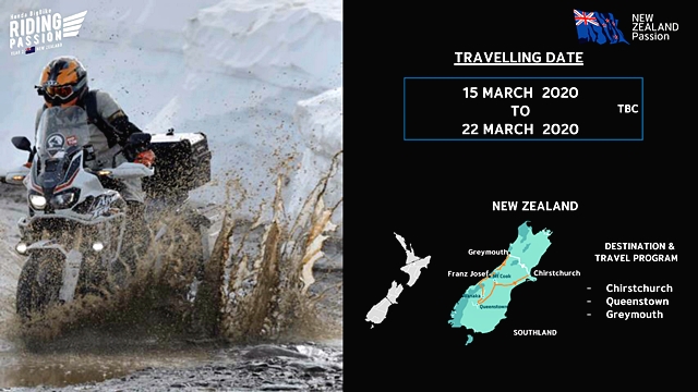 สำหรับผู้ชนะอีก 4 ท่านจากทริปนิวซีแลนด์ จะได้ขับขี่ Honda Africa Twin สัมผัสเส้นทางสุดท้าทายบนภูมิประเทศที่สวยงามแห่งหนึ่งของโลก เริ่มออกเดินทางช่วงกลางเดือนมีนาคม 2563