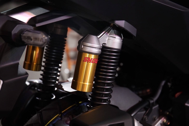 New ADV150 ติดตั้งระบบกันสะเทือนหลังแบบทวินซับแท็งก์คู่จากแบรนด์ Showa ช่วยดูดซับแรงกระแทกได้เร็วและนุ่มนวลกว่า ให้การยึดเกาะที่ดี ตอบโจทย์การใช้งานบนสภาพถนนทุกรูปแบบทั้งในเมืองและนอกเมือง และยังมอบความสะดวกสบาย ด้วยที่ชาร์จไฟสำรองในกล่องคอนโซลขนาดใหญ่ด้านหน้า และกุญแจรีโมทแบบสมาร์ทคีย์ที่สามารถระบุตำแหน่ง ทำหน้าที่สัญญาณกันขโมย และเปิดปิดสัญญาณรีโมทได้ในตัวเดียวกัน